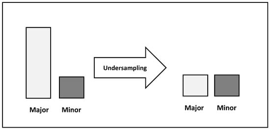 Another technique used for handling imbalanced datasets is undersampling. Undersampling involves reducing the number of instances in the majority class to balance the dataset (see Figure 4). This can be done by randomly selecting a subset of instances from the majority class to roughly equal the number of instances in each class.