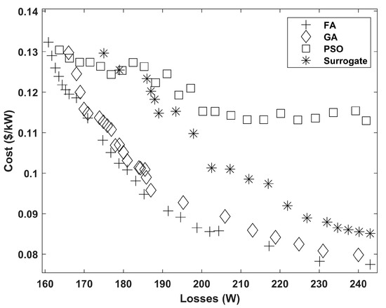 - Performing a multi-objective function optimization technique to minimize the losses and costs of the system, considering the Pareto optimality approach.
