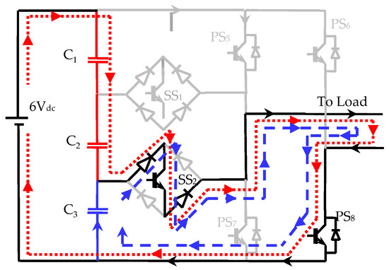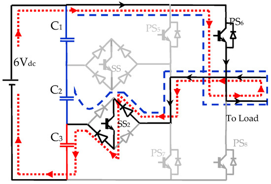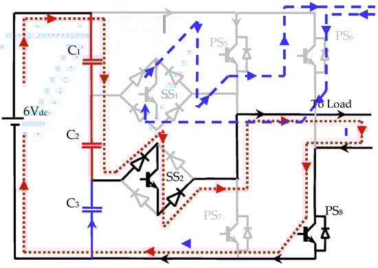 | Switching Mode | PS5 | PS6 | PS7 | PS8 | SS1 | SS2 | Status of Capacitors | Time Duration | ||