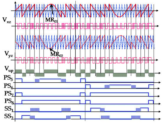 - We can develop the switching signals for the secondary switches calculated from the above equation. The first and last columns of the matrix are responsible for establishing the switching patterns for the initial and final secondary switches, respectively. The equations for SS1 and SSn are also included.