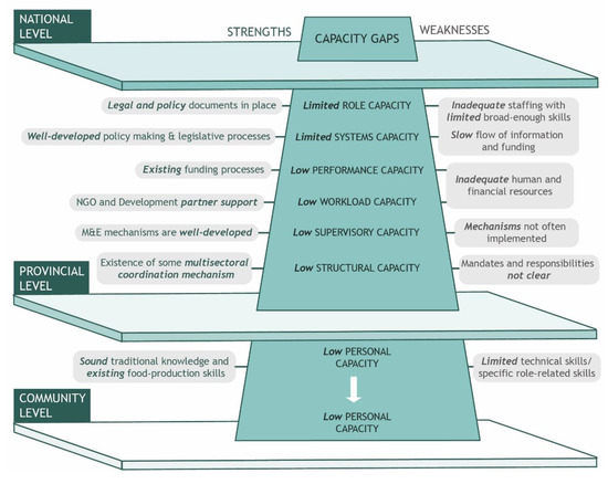 In this study, we provided an analysis of systemic capacity needs in food systems across three levels of governance (national, provincial, and community) in the Solomon Islands. Food systems are a leading priority of the national government. While all three levels of government play an active role in food system planning and activities in the Solomon Islands [9], improving capacity is paramount in translating these policies into actions.