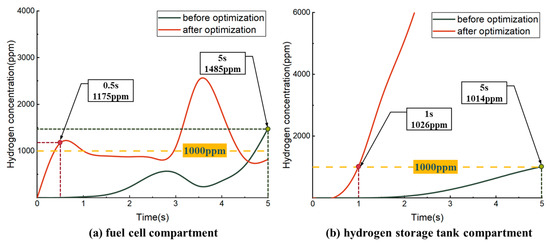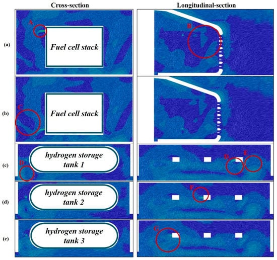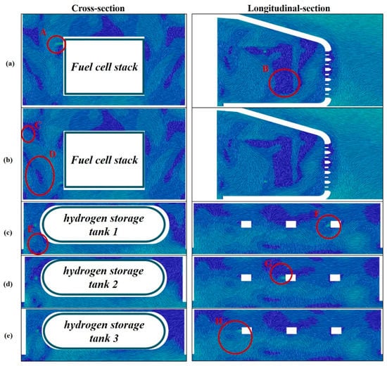 - Optimizing the position of HCSs. After optimization, the sensor position is highly coincident with several main vortex positions in the longitudinal wind scene, and the response time of the hydrogen leakage is shortened from 5 s to 1 s.