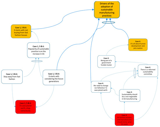 In the context of Case 4, economic and social sustainability emerged as primary institutional and regulatory drivers, indicating that conscious and aware designers or manufacturers play a significant role as stakeholder drivers in the adoption of sustainable manufacturing practices.
