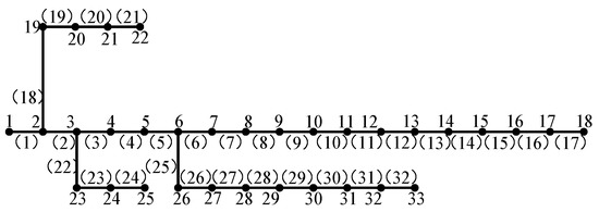 where b is the number of branches; P i ( t ) and Q i ( t ) are, respectively, the active power (kW) and reactive power (kVar) flowing through branch i at time t; U i ( t ) is the terminal node voltage of branch i at time t, kV; R i is the resistance value on branch i; Δ t is the duration of each period, h.