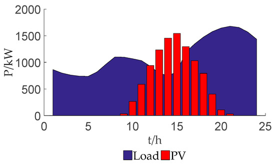 Nowadays, the shortage of traditional energy is increasing, and the demand for energy is increasing. With this problem, the proportion of photovoltaic units (PV) connected to the grid is increasing [1,2,3], and the mismatch of source and load will also affect the voltage of the distribution network. For example, it is easy to have reverse power transmission during the peak period of PV output, which leads to the voltage exceeding the upper limit. The energy storing device (ESD) has the ability to suppress power fluctuation, which can effectively alleviate the mismatch between source and load [4]. Therefore, the voltage regulation technology of a distribution network compatible with PVs and ESDs came into being [5,6]. How to effectively plan a large number of PVs, other distributed power sources, and energy storage in the distribution network to reduce voltage deviation, cost, and power loss has become an urgent problem that needs a solution.