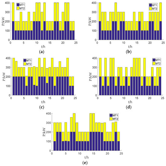 ➂ Power generation cost of MTs: C MT , g e consists of fuel cost and operation and maintenance cost C MT , o m (see Equation (8)). Among them, C MT , f u is related to factors such as natural gas price and power supply efficiency of the unit [22], and its calculation formula is shown in Equation (9). The calculation formula of C MT , o m is shown in Equation (10).