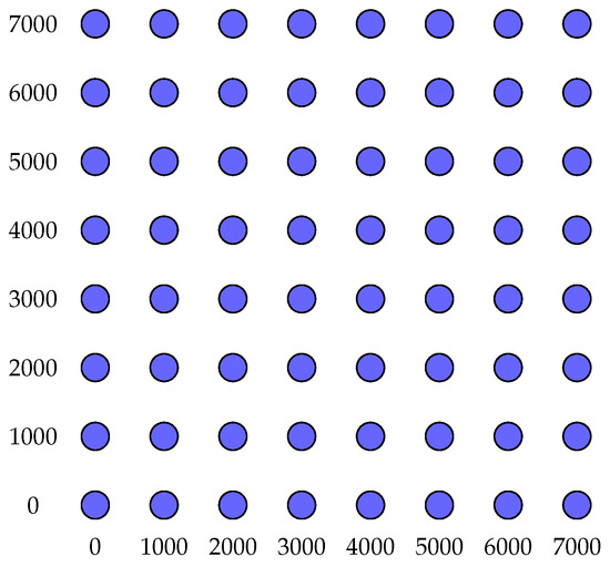 where h is the number of hours during the expected wind farm lifetime (20 years), is the energy cost, is the distance, in meters, between turbines i and j, is the resistance of the cable type k, is the rated current drawn by a WT, and is the load factor, which reflects the real operating conditions during the wind farm lifetime.