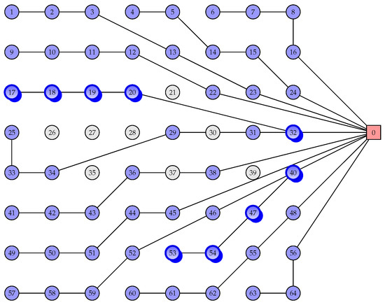 This work considered a set of the available cables, whose characteristics are listed in Table 2. The number of WTs in each branch line is bounded according to the maximum value for the current intensity of the cables. For a cable type k, the maximum current intensity value imposes an upper bound for the number of downstream WT given by . Therefore, the maximum number of WTs in any branch line is given by: