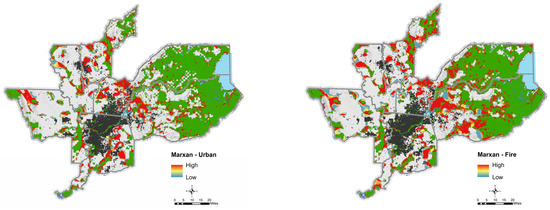 There are also opportunities for meeting multiple sustainability goals inside the urban perimeter. We identified 4.8% of the total residential area in the region that could dramatically benefit from urban greening and the addition of open space. Targeted intervention in these areas could lead to substantial positive impacts to human wellbeing in the region, especially in the disadvantaged communities identified by the GNI analysis. This could potentially also serve as a source of local food production. Diehl and Kaur (2021) [26] make the case that urban agriculture can help ease increasing competition for rural production. Posivakova et al. (2019) [27] show that urban biodiversity can be improved through agricultural production areas.