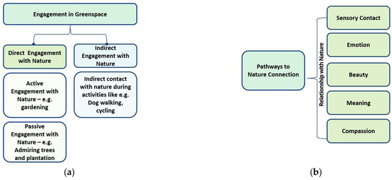 (a) ‘Green care code’ engagement matrix (after [11]); (b) categories of nature connection [21].
