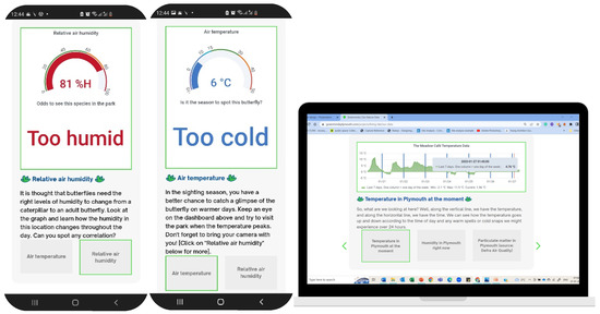The format of the day included an initial briefing session, completion of the baseline survey, and a mapping activity, which took place in the school hall, with the second half of the day taking place in the park. In Central Park, where the participants had the opportunity to interact and experiment with the Living Lab digital prototypes (installed in Central Park), they used the Nature Data Probe Toolkit to record live environmental data using sensors (Figure 6).