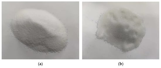 The C5 petroleum resin from Dongguan was selected as the film-forming material in this study. The pigment selected is rutile titanium dioxide, and its technical index is listed in Table 1. Dioctyl phthalate (DOP), polyethylene wax, and EVA are chosen as coating additives to improve the construction performance and product quality to a certain extent and to improve the fluidity and weathering resistance of coatings. The polyethylene wax is produced by Wuxi Yatai Company, the performance index test results are shown in Table 2, and the physical diagram is shown in Figure 1a. Glass beads are used as the reflective material of the coating, the origin is Xuzhou City, Jiangsu Province, China, and its basic performance index is shown in Table 3, and Figure 1b is the physical diagram. The selected hydrophobic material is polytetrafluoroethylene, produced in the city of Dongguan, and the basic indicators are shown in Table 4.