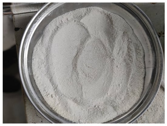 The hot-melt marking paint is prepared by a twin-screw extruder. The twin-screw extruder consists of three parts: the driving part, the processing part, and the extrusion part. The processing part is composed of a screw element and six pressure-resistant and individually temperature-controlled cylinders. The six cylinders are pressure-resistant to achieve precise temperature control, and the third and fourth cylinders in the feeding process are the main reaction zones. First and foremost, the various raw materials in the formula are precisely weighed and placed into a container for pre-mixing. This step ensures even mixing of the materials, resulting in high uniformity of the marking paint that is well-prepared for use. Then, we start the equipment and set the temperature of the six temperature control zones. The temperature of the first and second zone is set to 130 °C, the temperature of the main reaction zone is set to 210 °C, the temperature of the fifth and sixth zone is set to 190 °C, the speed of the main machine is set to 50 RPM, the speed of the feeding end is set to 10 RPM. We put the mixed raw materials into the feeding port for the preparation of the marking paint, and put the prepared paint into the crusher. The speed of the crusher is set to 2000 RPM, the time is set to two minutes, and the prepared marking paint is shown in Figure 2.