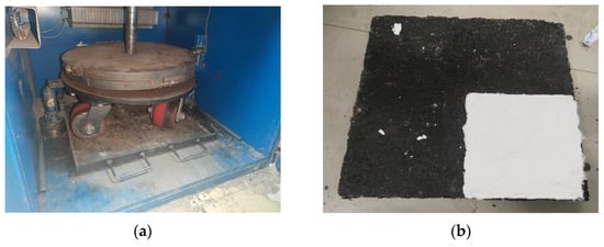 Accelerated wear test: (a) four-wheel wear tester; (b) rutting plate.