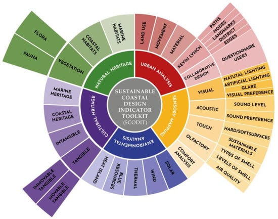 The objectives of this exploratory paper are to propose and implement original urban design strategies, but also to highlight the links between cultural and natural heritage at the city–land–sea interface and, in particular, in coastal areas with historical value. For the moment, the tools for evaluating the social and economic “value” of this heritage are extremely limited. Moreover, design and environmental parameters may also come into play in this context, and it is worth considering the creation of an evaluation toolkit. The proposed methodology includes three phases: a documentary analysis, an on-site analysis consisting of a sensory mapping and an analysis by questionnaires. The main result of this work is to demonstrate that the methodology of sensory mapping techniques allows obtaining a holistic global approach where all human senses are considered in the analytical phase of pre-design of a coastal site, thus integrating this approach in a more sustainable design strategy. This methodology was evaluated in a significant natural and historic area. This case study and the literature review demonstrate that it is possible to provide a scheme toolkit that integrates all the parameters of importance identified in urban analysis, sensory mapping, environmental analysis and natural and cultural heritage analysis.