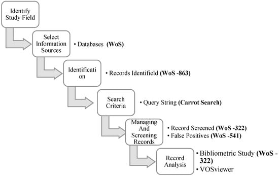 Before starting a comprehensive bibliometric analysis, it is necessary to correctly take screening process steps. For this purpose, a step map has been determined in which the research approach—that is, the framework—is summarized (Figure 2).