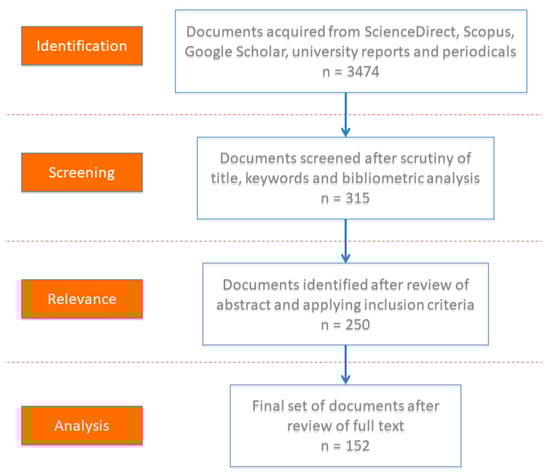 The issue of UHIs and sustainable mitigation practices is gaining relevance among individuals residing in densely populated urban areas. Global industrial and development activities have led to an increased emphasis on environmental sustainability, which marks a departure from past practices. Given the escalating expenses associated with the UHI phenomenon, it is imperative to prioritize the identification of sustainable measures aimed at mitigating its adverse impacts. Despite the fact that a number of studies have already been conducted to identify sustainable green strategies, this study will concentrate on a variety of urban-specific strategies that incorporate the built environment. This study reviewed over 315 documents to gather the recent literature; however, 163 were irrelevant to the study’s objectives and out-of-date. Consequently, they were excluded. Table 2 presents detailed descriptions of the reviewed articles and the details from various academic sources (ScienceDirect, PubMed, Scopus, Google Scholar, etc.). UHI, UHI mitigation methods, the built environment and green infrastructure, and climate change were all used as search keywords for relevant papers.