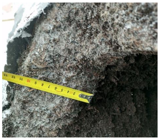 The microbiological decomposition processes of the organic substrate during composting are most active at favorable ambient temperatures in the warm season [15]. At low ambient temperatures, heat loss from a heap can exceed the amount of heat generated from microbiological destruction, thereby provoking a halt in the composting process and causing the compost mass in the heap to freeze [18,19,20].