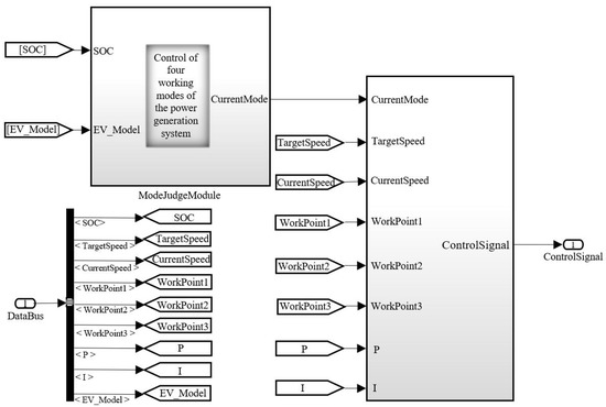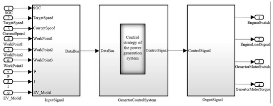 The range extender is formed by the series coupling of the engine and the generator. After the vehicle has been driven for a period of time, the range extender will open when the battery SOC reaches the lower limit. When the battery energy is insufficient, the range extender should ensure the vehicle’s normal driving and charge the battery with the excess energy. Its parameter matching determines the vehicle’s driving range and fuel economy.