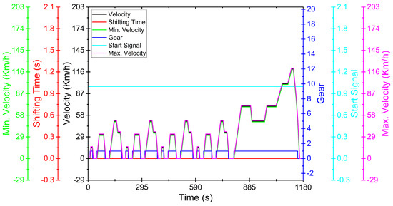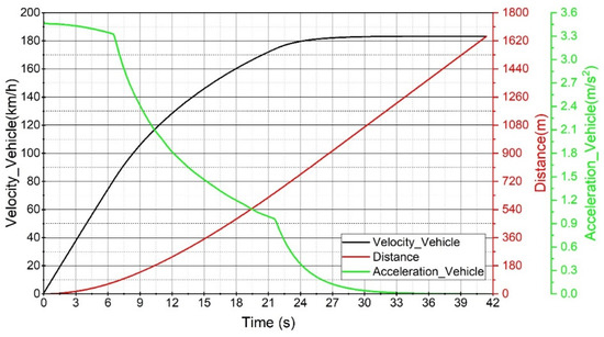 According to the provisions of relevant national standards [40,41] a vehicle’s dynamic performance refers to the maximum speed, maximum climbing gradient, 0–100 km/h acceleration time, etc., when the vehicle is running on a good road. In addition, the energy-saving effect of the vehicle, the endurance mileage in a pure electric state, and other economic performance must be studied together with the vehicle’s dynamic performance.