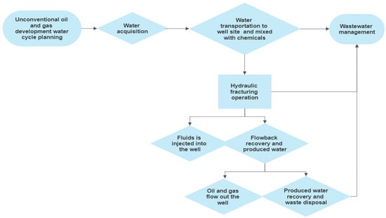 However, previous studies have shown that conventional hydraulic fracturing causes several environmental issues, mainly because of its significant water consumption. Millions of gallons of water are frequently utilized in a single fracturing operation, and a typical hydraulic fracturing operation for a horizontal gas well in a tight shale formation typically requires 3 to 5 million gallons of water over a 2- to 5-day period []. Due to the potential strain on local water supplies, particularly in arid areas, this high water consumption necessitates sophisticated water management techniques.