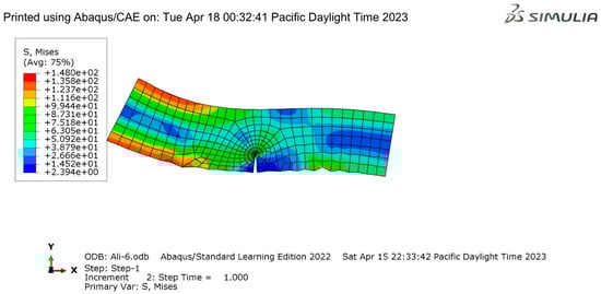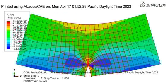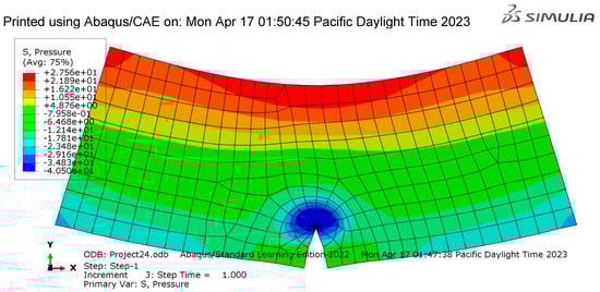 Application to hydraulic fracturing: Abaqus LEFM can be applied to hydraulic fracturing and rectangular pulse hydraulic fracturing methods by coupling the LEFM equations with fluid flow and rock deformation equations [,]. The fluid flow inside the fracture and the deformation of the rock surrounding the fracture can be modeled using the Navier–Stokes and linear elasticity equations, respectively []. These equations can then be coupled with the LEFM equations to predict the fracture propagation and overall efficiency of the hydraulic fracturing process [].