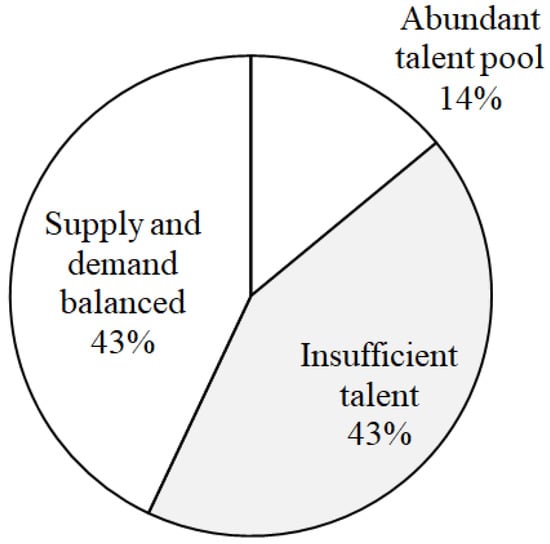 Offshore wind power has become an important area of construction in recent years as part of the government’s forward-looking infrastructure initiatives. Due to a lack of domestic expertise in the design and manufacturing of subsea foundations in the early stages of the industry’s development, many manufacturing techniques and workforce requirements rely on assistance from foreign developers. Consequently, the cultivation and recruitment of welding personnel for subsea foundation steel component production and manufacturing management have become urgent issues for domestic companies. The current utilization of talent recruitment by subsea foundation industry companies according to the “Taiwan Offshore Wind Power Subsea Foundation Professional Talent Demand” research report by the Taiwan Advisory and Intelligence Service Program in 2019 is illustrated in Figure 3. The figure shows that 43% of domestic companies reported “difficulties in finding talent” and “insufficient talent”. Additionally, 43% of domestic companies mentioned that “talent supply is limited, but talent can still be found with extended recruitment time”, indicating a “balanced supply and demand” situation. In contrast, only 14% of companies indicated “sufficient talent”, revealing that there is still a shortage of professional talent supply and recruitment in Taiwan’s subsea foundation industry []. Based on these findings, although the underwater foundation industry has promising market prospects and related industry chain manufacturers possess basic technical capabilities, the lack of practical experience and high talent requirements result in skill shortages among both existing and new employees, making it difficult to meet industry demands.