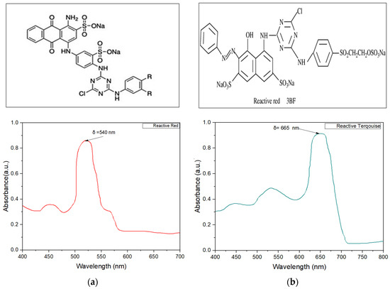 The dyes’ chemical structure. (a) Reactive turquoise; (b) reactive red.