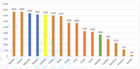 The prolonged slump in South African economic activity, which was heightened by the COVID-19 pandemic, combined with regulatory bottlenecks, public sector funding constraints, and reluctance in private sector investment during and in the aftermath of the state capture era has curtailed momentum with progress in the adoption of renewables, and developments are behind schedule. The COVID-19 pandemic and its associated devastation over the fragile South African economy provided the impetus for the President’s Economic Reconstruction and Recovery Plan (ERRP), announced in late 2020. In the spirit of ‘do not let a crisis go to waste’, one of the key stimulus areas is the rapid expansion of electricity generation capacity through a diverse energy mix. This focus area has also been labelled an attempt at kickstarting a ‘green economic recovery’ aimed at achieving the elusive double dividend of (1) boosting economic growth coupled with associated benefits such as job creation and the reduction of inequality and (2) reducing harmful emissions, leading to environmental benefits. Barbieri et al. [] examined the effects of green versus non-green growth trajectories. Their findings showed that green growth led to growth, emission reduction, and increased net jobs. However, the extractive sectors lost jobs as the economy reduced reliance on fossil fuels. Such results call for a better understanding of a just transition, ensuring that no one is left behind.