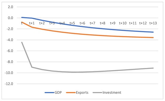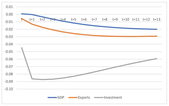 The second policy shock (S2) extends the first by capturing possible spillover effects into the broader economy of deteriorating financing, fiscal, and risk conditions. Within UPGEM, this is modelled as an economy-wide increase in the required rate of return of investors across all industries for any given amount of investment or less investment at any offered rate of return than before.