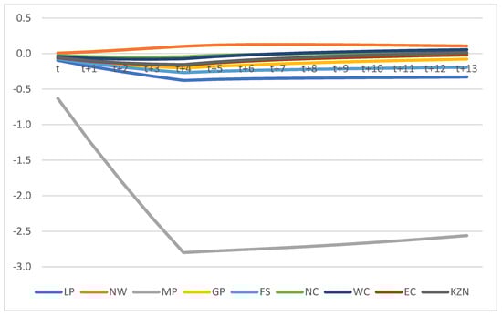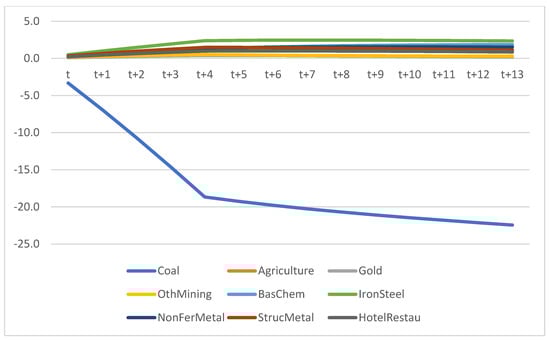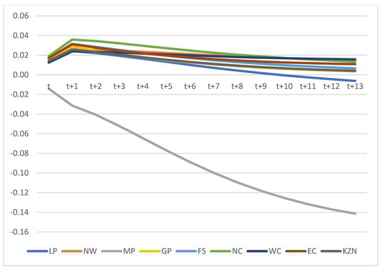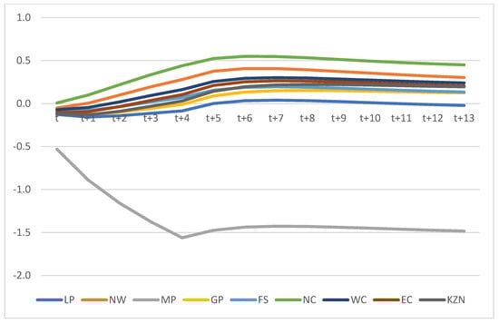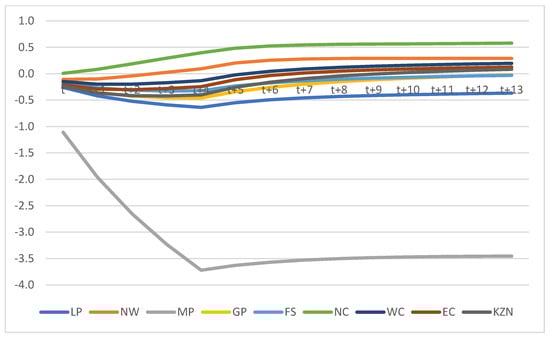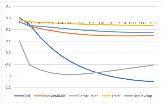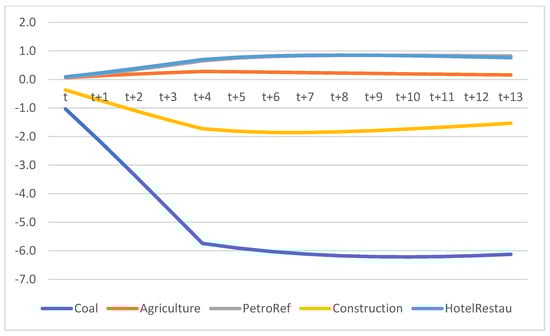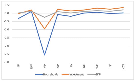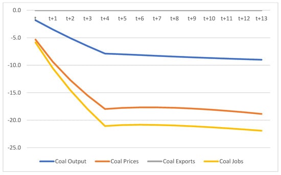 Scenario 4 (S4) simulates a change in the input structure of electricity generation in South Africa win line with the broader energy transition envisioned in the IRP and through its SDG commitments. Specifically, we model a benchmark technological shift in electricity production away from coal use (50% less over a two-year period) towards non-coal inputs. Realistically, such a transition will likely occur over many years, but this simulation deliberately models a quick transition as part of the benchmark modelling strategy. This particular scenario builds on the work done by Bohlmann et al. [] by using a dynamic version of the regional UPGEM instead of a static long-run version.
