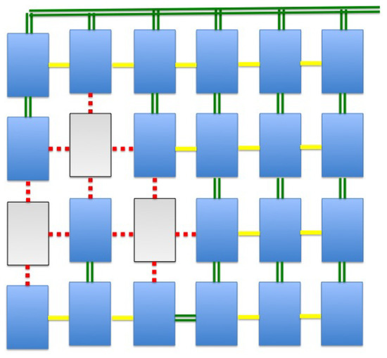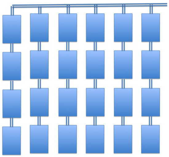 Once the type of panel has been chosen, the configurations are distributed in matrix form (Figure 3) by means of intercommunicating rows and columns. A priori, the basic configuration is columns interconnected in series up to the first row, and in this last row, all the columns are connected in parallel [7].