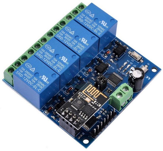 - Low-cost model: development based on the Esp8266 chip with four relays. These devices will accompany each of the panels and will allow independent solutions, depending on their configuration, of maximum voltage and maximum amperage.