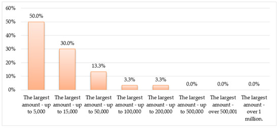 The survey results indicated that, when asked about the largest donated amount, half of respondents donated up to €5000, while 30% of respondents said they donated up to €15,000. A further 13% said they donated up to €50,000 (see Figure 5). Foreign studies indicate that donation amounts are generally higher [44]. It is accepted that this is a challenge for philanthropic organizations in their work with graduates, which unfortunately, is still at the incipient stage in terms of the University of Latvia environment.