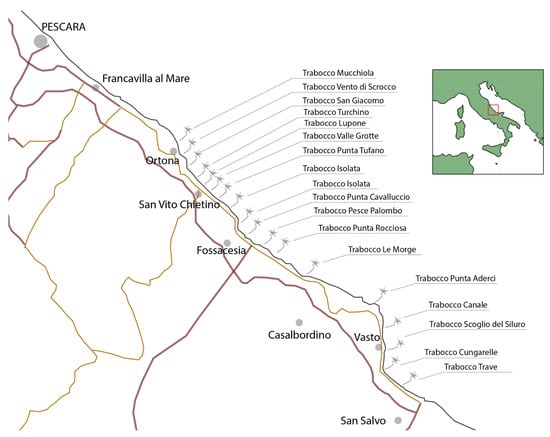 - Cupido, P. Trabocchi Traboccanti e Briganti; Edizioni Menabò: Ortona, Italy, 2003. [Google Scholar]