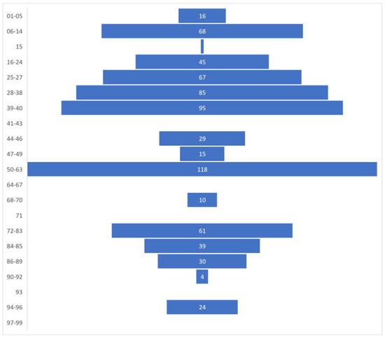 The author posits that the distributional coalitions deliberately have their products under-protected by deploying the tariff schedules to preserve their interests under certain conditions. To investigate this speculation, this paper employs the concept of revealed comparative advantages (RCAs). RCAs for the period from 2004 to 2019 are calculated using Vietnam’s export data obtained from the UN Comtrade Database. Then, it counts the number of products with RCAs greater than one each year. The results are recorded at the HS 2002 two-digit level. Throughout the period, a total of 3887 products were found to have RCAs greater than one. The frequency of products recording an RCA larger than one is then counted. As an illustration, if products belonging to code 61 exhibit RCAs greater than one 243 occasions throughout the analysed period, then the calculated ratio is 0.063, which is obtained by diving 243 by the total number of products with RCAs greater than one, 3887. The results are depicted in Figure 3. By considering these three indicators collectively, this paper identifies three distinct groups within the set of 33 under-protected products.