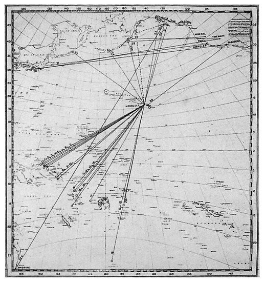 Another observation at BRS (Gardens Point) occurred on 23 September1949 (Figure 2) when an event was recorded on the BRS Benioff Z (short period) sensor recorder. This event was reported to the Smithsonian Institute for Short Lived Phenomena and was later picked up by researchers as a T wave generated by the Queen Charlette Islands earthquake (Canada) and reported in a research paper [17] (Figure 3). This is an incredible distance for sound to travel in an ocean.