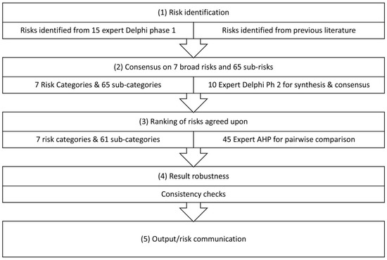 Emulating [68], the Delphi framework was utilized to identify and seek consensus among geographically detached experts, the majority of whom are domiciled within the region of planned GHP implementation. This was attempted as the validity of the results is dependent on the intricacies of the context within which potential risks occur. This strategy is supported by earlier research such as [69], where input of experts from the project context was prioritized while identifying potential risks using a three-dimensional framework, and [70] that used a three-phase methodology employing brainstorming, expert interview, and decision-making trial and evaluation laboratory method to investigate critical factors. Further, the value of using a structured methodology to identify and evaluate risks was demonstrated by [71].