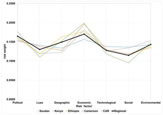 - Economic risk (Ec): Is important since individual countries’ participation in the GHP is dependent on whether they can benefit economically from selling commodities to other countries. Yet, project nations consist of economies that either produce almost similar climate-sensitive agricultural export commodities or are based on finite oil and mineral resources. In addition, it is uncertain if all project nations will contribute counterpart funding toward project realization. Further, the high weight of economic risks points to the upfront requirement of huge-sunk costs to construct, sustain operations, and periodically maintain the highway against current fiscal shrinkage.