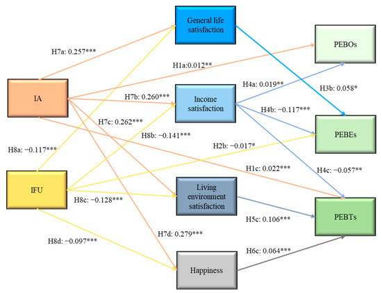 Path analysis results. *, **, and *** indicate significance at the 10%, 5%, and 1% levels, respectively.