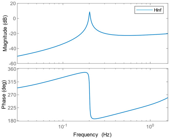 Since this study focuses the reduction of BRBM at the 1P frequency, a loop-shaping controller is designed to alleviate the blade load at 1P. The transfer functions used for constructing the overall compensating weighting function of Equation (15) are given as
