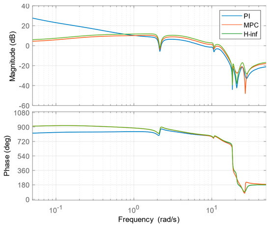 The controller, , does not significantly disturb the loop shape in the range of frequencies where the gain is either high or low and will guarantee satisfactory stability margins. The final controller to be applied is . Equation (14) should be satisfied for optimum control performance and satisfactory stability margins.