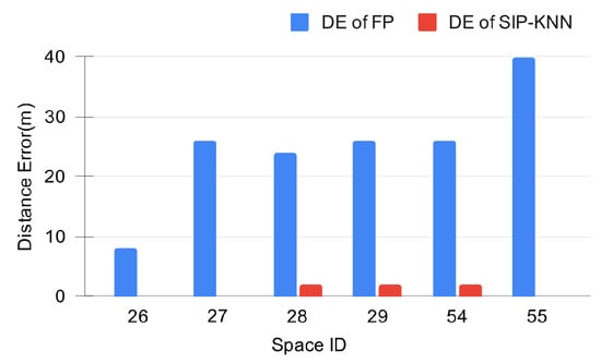 Distance Error of fingerprint algorithm (FP) vs. the proposed algorithm (SIP-KNN).