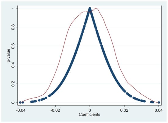 72]. The treatment and control groups were randomly simulated, Golden Tax Project III was randomly assigned to the sample companies and regressed based on model (1), and the process was repeated 500 times.