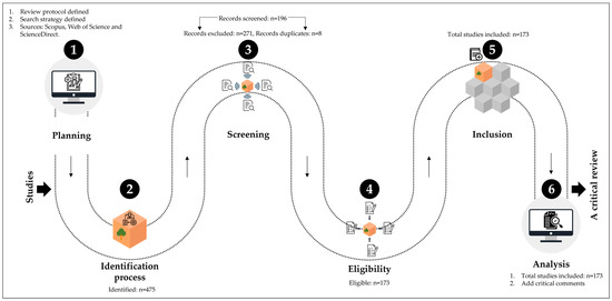 Nevertheless, while it is recognized that studies published in other languages may contain relevant information, this study considered only scientific papers published in English and Spanish. Given the wide scope of the literature and the large number of results obtained in the search of the database, the inclusion and exclusion criteria were established based on the research topic, type of study, date of publication, language, refereed articles, and citation index. The inclusion and exclusion criteria must be clear and coherent to increase the precision and reliability of the obtained results [77]. After a preliminary review, a total of 173 papers were selected and analyzed for this research.