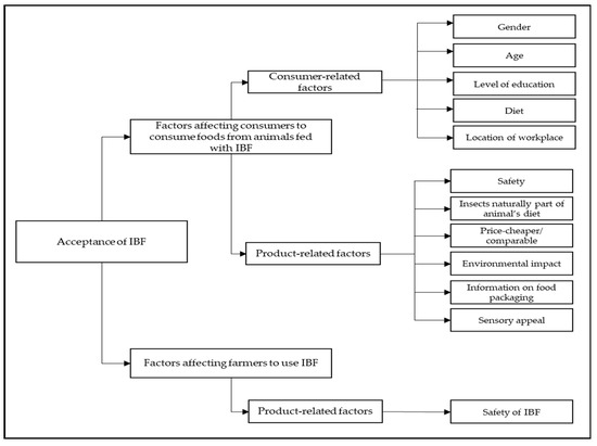 This study explored the factors affecting the acceptance of IBF amongst a segment of consumers and farmers in Ireland. Figure 7 shows a summary of the consumer- and product-related factors found from the analysis of the quantitative data as having an influence in that regard, while Table S6 shows a summary of the factors generated through the analysis of qualitative data.