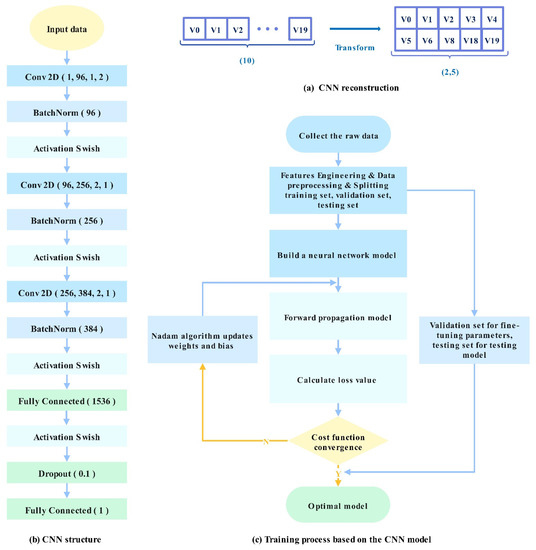 In this study, data reconstruction was conducted to convert the training dataset into a standard input format for a CNN-based prediction model. As shown in Figure 5a, the data of 10 characteristic variables were input into the model to convert these sequence data into an image format.