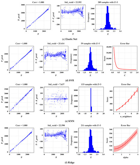 Because Ridge is significantly affected by abnormal samples in the datasets, abnormal samples were excluded from the data used for Ridge predictions, and the remaining samples were input into the model, which effectively reduced the time cost in the presence of a large amount of data. Ridge adds a regularization item to the loss function in the model iteration process and reduces the impact of abnormal samples on model parameters by setting the regularization strength. The greater the regularization strength, the stronger the generalization ability, which limits the matching of model parameters to abnormal samples and biases the prediction results toward normal samples, thereby improving the fitting precision of the model for most normal samples. To avoid the impact of outliers on the prediction results, Ridge reduces the weight of abnormal samples in the calculation.