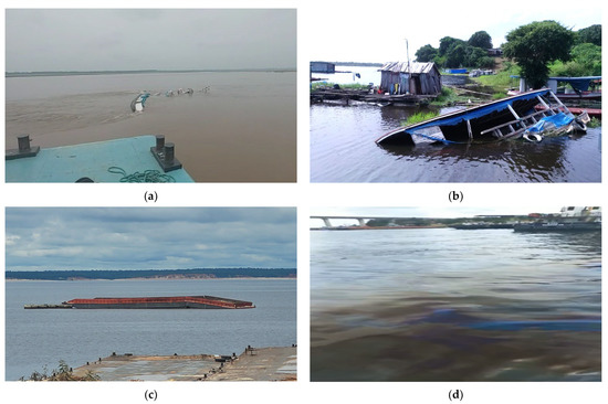 - Marine accidents involving different types of ships and activities are still common in the Amazon region and contribute to the growing problem of water pollution. Of global concern is the pollution from plastics, including microplastics in marine environments, as presented in [84], which describes some of the main negative ecological and socio-economic consequences of this. These include the dispersal and rafting of organisms, entanglements, the introduction of invasive species, the provision of new habitats, suffocation, starvation, and toxicological effects due to plastic ingestion [84]. Recent research performed in the Amazonian rivers by [85] has stated that despite microplastics being one of the most widespread contaminants, research on the risks they pose to river ecosystems is still scarce. Their field study involved sampling along the Amazon River and its main tributaries to characterize the microplastics found and assess ecotoxicological risks.
