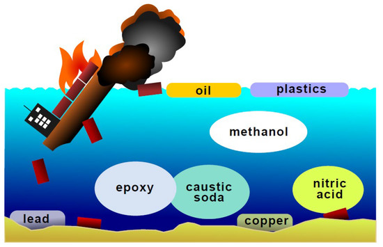 - Rogowska, J.; Wolska, L.; Namieśnik, J. Impacts of Pollution Derived from Ship Wrecks on the Marine Environment on the Basis of s/s “Stuttgart” (Polish Coast, Europe). Sci. Total Environ. 2010, 408, 5775–5783. [Google Scholar] [CrossRef]